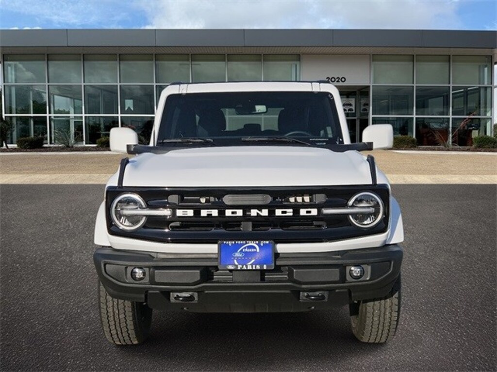 Oxford White 2025 Ford Bronco Outer Banks 4WD 10-Speed Automatic 2.3L EcoBoost I-4 18" Bright Machined Aluminum Wheels, 3.73 Axle Ratio, 4-Wheel Disc Brakes, 7 Speakers, ABS brakes, Air Conditioning, Alloy wheels, AM/FM radio: SiriusXM with 360L, AM/FM Stereo, Auto High-beam Headlights, Auto-dimming Rear-View mirror, Automatic temperature control, Brake assist, Compass, Connected Navigation, Delay-off headlights, Driver door bin, Driver vanity mirror, Dual front impact airbags, Dual front side impact airbags, Electronic Stability Control, Emergency communication system: 911 Assist, Exterior Parking Camera Rear, Front anti-roll bar, Front Bucket Seats, Front Center Armrest, Front dual zone A/C, Front fog lights, Front reading lights, Front wheel independent suspension, Fully automatic headlights, Heated door mirrors, Heated front seats, Heated Leather-Trimmed/Vinyl Bucket Seats, Heated steering wheel, Illuminated entry, Integrated roll-over protection, Leather Shift Knob, Low tire pressure warning, Navigation system: Connected Navigation, Occupant sensing airbag, Outside temperature display, Overhead airbag, Overhead console, Panic alarm, Passenger door bin, Passenger vanity mirror, Power door mirrors, Power driver seat, Power passenger seat, Power steering, Power windows, Radio data system, Rear seat center armrest, Remote keyless entry, Security system, SiriusXM w/360L, Speed control, Split folding rear seat, Steering wheel mounted audio controls, SYNC 4, Tachometer, Telescoping steering wheel, Tilt steering wheel, Traction control, Trip computer, Variably intermittent wipers, and Voltmeter.