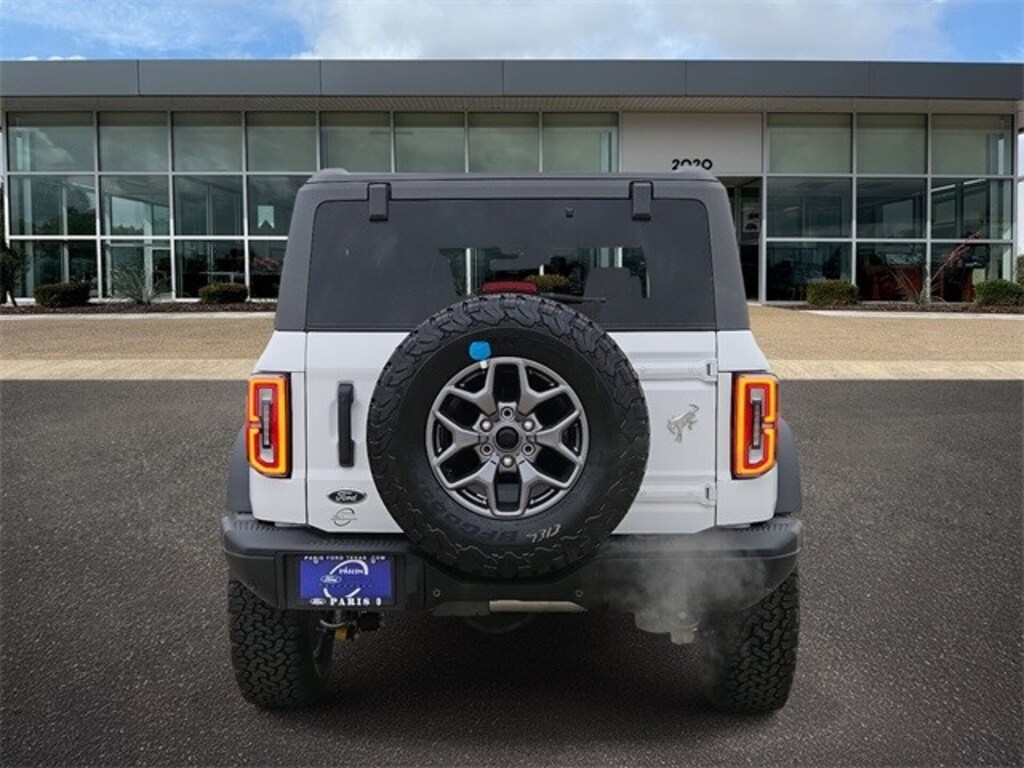 Oxford White 2025 Ford Bronco Badlands 4WD 10-Speed Automatic 2.7L EcoBoost V6 4-Wheel Disc Brakes, 4.7 Axle Ratio, 7 Speakers, ABS brakes, Air Conditioning, Alloy wheels, AM/FM radio: SiriusXM with 360L, AM/FM Stereo, Auto High-beam Headlights, Auto-dimming Rear-View mirror, Brake assist, Compass, Delay-off headlights, Driver door bin, Driver vanity mirror, Dual front impact airbags, Dual front side impact airbags, Electronic Stability Control, Emergency communication system: 911 Assist, Exterior Parking Camera Rear, Front anti-roll bar, Front Bucket Seats, Front Center Armrest, Front fog lights, Front reading lights, Front wheel independent suspension, Fully automatic headlights, Heated door mirrors, Heated front seats, Heated steering wheel, Illuminated entry, Integrated roll-over protection, Leather Shift Knob, Low tire pressure warning, Marine Grade Vinyl Heated Bucket Seats, Occupant sensing airbag, Outside temperature display, Overhead airbag, Overhead console, Panic alarm, Passenger door bin, Passenger vanity mirror, Power door mirrors, Power steering, Power windows, Radio data system, Remote keyless entry, Security system, SiriusXM w/360L, Speed control, Split folding rear seat, Steering wheel mounted audio controls, SYNC 4, Tachometer, Telescoping steering wheel, Tilt steering wheel, Traction control, Trip computer, Variably intermittent wipers, Voltmeter, and Wheels: 17" Carbonized Gray-Painted Aluminum.