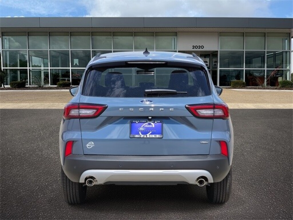 Vapor Blue Metallic 2025 Ford Escape Plug-In Hybrid FWD eCVT 2.5L iVCT 2.5L iVCT, 2.91 Axle Ratio, 4-Wheel Disc Brakes, 6 Speakers, ABS brakes, Air Conditioning, Alloy wheels, AM/FM radio: SiriusXM, AM/FM Stereo, Auto High-beam Headlights, Automatic temperature control, Brake assist, Bumpers: body-color, Compass, Delay-off headlights, Driver door bin, Driver vanity mirror, Dual front impact airbags, Dual front side impact airbags, Electronic Stability Control, Emergency communication system: SYNC 4 911 Assist, FordPass Connect, Four wheel independent suspension, Front anti-roll bar, Front Bucket Seats, Front Center Armrest, Front dual zone A/C, Front fog lights, Front reading lights, Fully automatic headlights, Heated door mirrors, Heated front seats, Heated steering wheel, Heated Vinyl/Cloth Front Sport Contour Bucket Seats, Illuminated entry, Knee airbag, Low tire pressure warning, Navigation system: Connected Navigation, Occupant sensing airbag, Outside temperature display, Overhead airbag, Overhead console, Panic alarm, Passenger door bin, Passenger vanity mirror, Power door mirrors, Power driver seat, Power Liftgate, Power steering, Power windows, Radio data system, Rear anti-roll bar, Rear reading lights, Rear seat center armrest, Rear window defroster, Rear window wiper, Remote keyless entry, Speed control, Speed-sensing steering, Speed-Sensitive Wipers, Split folding rear seat, Spoiler, Steering wheel mounted audio controls, SYNC 4 w/Enhanced Voice Recognition, Telescoping steering wheel, Tilt steering wheel, Traction control, Trip computer, Variably intermittent wipers, and Wheels: 18" Machined-Face Magnetic Aluminum. 2.5L iVCT.