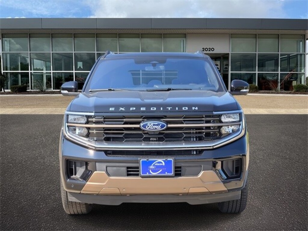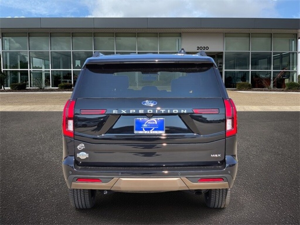 Agate Black Metallic 2025 Ford Expedition Max King Ranch 4WD 10-Speed Automatic EcoBoost 3.5L V6 GTDi DOHC 24V Twin Turbocharged Equipment Group 400A Standard Package (BlueCruise Equipped (1-Year Plan)), Expedition Max King Ranch, EcoBoost 3.5L V6 GTDi DOHC 24V Twin Turbocharged, 10-Speed Automatic, 4WD, Agate Black Metallic, Mesa w/Heated/Vent Prem Del Rio Lthr Fr Captain's Chairs, 22 Speakers, 3.73 Axle Ratio, 3rd row seats: split-bench, 4-Wheel Disc Brakes, ABS brakes, Active Cruise Control, Adaptive suspension, Adjustable pedals, Air Conditioning, Alloy wheels, AM/FM radio: SiriusXM with 360L, Apple CarPlay/Android Auto, Auto High-beam Headlights, Auto-dimming door mirrors, Auto-dimming Rear-View mirror, Automatic temperature control, BlueCruise Equipped (One-Time Purchase), Brake assist, Bumpers: body-color, Compass, Delay-off headlights, Driver door bin, Driver vanity mirror, Dual front impact airbags, Dual front side impact airbags, Electronic Stability Control, Emergency communication system: 911 Assist, Exterior Parking Camera Rear, Four wheel independent suspension, Front anti-roll bar, Front Bucket Seats, Front Center Armrest, Front dual zone A/C, Front reading lights, Fully automatic headlights, Garage door transmitter, Genuine wood dashboard insert, Genuine wood door panel insert, Heated door mirrors, Heated front seats, Heated rear seats, Heated steering wheel, Heated/Vent Prem Del Rio Lthr Fr Captain's Chairs, Illuminated entry, Leather steering wheel, Low tire pressure warning, Memory seat, Navigation System, Occupant sensing airbag, Outside temperature display, Overhead airbag, Overhead console, Panic alarm, Passenger door bin, Passenger vanity mirror, Pedal memory, Power door mirrors, Power driver seat, Power moonroof: Vista Roof, Power passenger seat, Power steering, Power windows, Radio data system, Radio: B&O Unleashed Sound System by Bang & Olufsen, Rain sensing wipers, Rear air conditioning, Rear anti-roll bar, Rear reading lights, Rear window defroster, Rear window wiper, Reclining 3rd row seat, Remote keyless entry, Security system, SiriusXM w/360L, Speed control, Speed-sensing steering, Speed-Sensitive Wipers, Split folding rear seat, Spoiler, Steering wheel memory, Steering wheel mounted audio controls, Tachometer, Telescoping steering wheel, Tilt steering wheel, Traction control, Trip computer, Turn signal indicator mirrors, Variably intermittent wipers, Ventilated front seats, Voltmeter, and Wheels: 22" Sinister Brown w/Diamond Cut Face Alum. Expedition Max King Ranch, EcoBoost 3.5L V6 GTDi DOHC 24V Twin Turbocharged, 10-Speed Automatic, 4WD, Agate Black Metallic, Mesa w/Heated/Vent Prem Del Rio Lthr Fr Captain's Chairs.