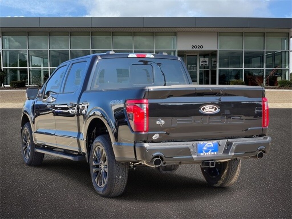 Agate Black Metallic 2025 Ford F-150 XLT 4WD 10-Speed Automatic 3.5L V6 EcoBoost Equipment Group 301A Standard (6" Angular Bright Anodized Step Bar, Black Painted Grille w/Chrome Center Bar, Chrome Door & Tailgate Handles, Chrome Single-Tip Exhaust, Cloth 40/20/40 Front Seat w/Console, Dual-Zone Electronic Automatic Temperature Control, and Wrapped Steering Wheel), GVWR: 6,650 lbs Payload Package, F-150 XLT, 4D SuperCrew, 3.5L V6 EcoBoost, 10-Speed Automatic, 4WD, Agate Black Metallic, Black w/Unique Sport Cloth 40/Console/40 Front-Seats, 3.55 Axle Ratio, 4-Wheel Disc Brakes, 4x4 FX4 Off-Road Bodyside Decal, 6 Speakers, ABS brakes, Air Conditioning, Alloy wheels, AM/FM radio: SiriusXM with 360L, Auto High-beam Headlights, Brake assist, Bumpers: chrome, Chrome wheels, Cloth 40/20/40 Front Seat, Compass, Delay-off headlights, Driver door bin, Driver vanity mirror, Dual front impact airbags, Dual front side impact airbags, Electronic Stability Control, Emergency communication system: SYNC 4 911 Assist, Front anti-roll bar, Front Center Armrest, Front fog lights, Front reading lights, Front wheel independent suspension, Fully automatic headlights, Heated door mirrors, Illuminated entry, Low tire pressure warning, Occupant sensing airbag, Outside temperature display, Overhead airbag, Overhead console, Panic alarm, Passenger door bin, Passenger vanity mirror, Power door mirrors, Power steering, Power windows, Radio data system, Radio: AM/FM Stereo w/SiriusXM 360L, Rear Parking Sensors, Rear reading lights, Rear step bumper, Rear window defroster, Remote keyless entry, Security system, Speed control, Split folding rear seat, Steering wheel mounted audio controls, SYNC 4 w/Enhanced Voice Recognition, Tachometer, Telescoping steering wheel, Tilt steering wheel, Traction control, Trip computer, Variably intermittent wipers, Voltmeter, and Wheels: 18" Chrome-Like PVD. F-150 XLT, 4D SuperCrew, 3.5L V6 EcoBoost, 10-Speed Automatic, 4WD, Agate Black Metallic, Black w/Unique Sport Cloth 40/Console/40 Front-Seats.