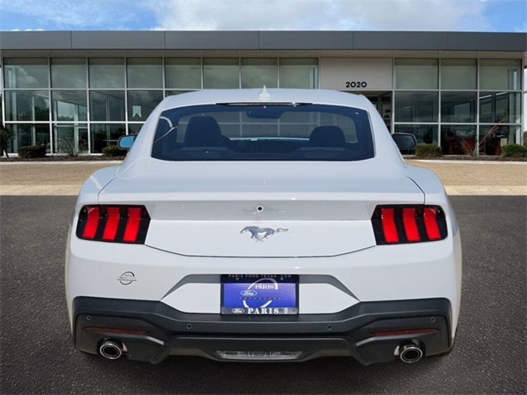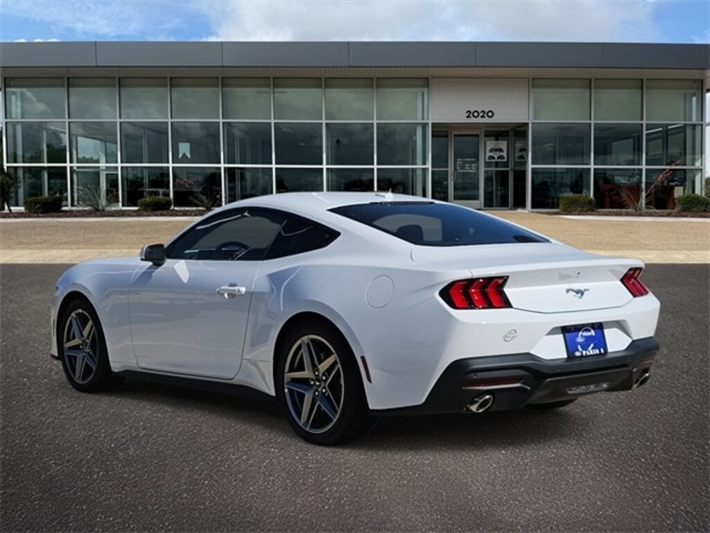 Oxford White 2025 Ford Mustang EcoBoost RWD 10-Speed Automatic EcoBoost 2.3L I4 GTDi DOHC Turbocharged VCT ABS brakes, Alloy wheels, Compass, Electronic Stability Control, Front dual zone A/C, Illuminated entry, Low tire pressure warning, Remote keyless entry, Traction control, 4-Wheel Disc Brakes, 6 Speakers, Air Conditioning, AM/FM radio, AM/FM Stereo, Auto High-beam Headlights, Automatic temperature control, Brake assist, Bumpers: body-color, Cloth Bucket Seats, Delay-off headlights, Driver door bin, Driver vanity mirror, Dual front impact airbags, Dual front side impact airbags, Emergency communication system: 911 Assist, Exterior Parking Camera Rear, Four wheel independent suspension, Front anti-roll bar, Front Bucket Seats, Front Center Armrest, Front reading lights, Fully automatic headlights, Knee airbag, Leather Shift Knob, Occupant sensing airbag, Outside temperature display, Overhead airbag, Overhead console, Panic alarm, Passenger door bin, Passenger vanity mirror, Power door mirrors, Power steering, Power windows, Radio data system, Rain sensing wipers, Rear anti-roll bar, Rear Parking Sensors, Rear window defroster, Speed control, Speed-sensing steering, Speed-Sensitive Wipers, Split folding rear seat, Sport steering wheel, Steering wheel mounted audio controls, SYNC 4, Tachometer, Telescoping steering wheel, Tilt steering wheel, Trip computer, Variably intermittent wipers, Voltmeter, and Wheels: 18" x 8" Machined-Face Aluminum. ABS brakes, Alloy wheels, Compass, Electronic Stability Control, Front dual zone A/C, Illuminated entry, Low tire pressure warning, Remote keyless entry, Traction control.