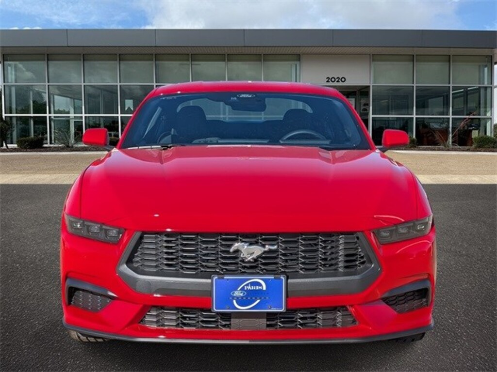 Race Red 2026 Ford Mustang EcoBoost RWD 10-Speed Automatic EcoBoost 2.3L I4 GTDi DOHC Turbocharged VCT ABS brakes, Alloy wheels, Compass, Electronic Stability Control, Front dual zone A/C, Illuminated entry, Low tire pressure warning, Remote keyless entry, Traction control, 4-Wheel Disc Brakes, 6 Speakers, Air Conditioning, AM/FM radio, AM/FM Stereo, Auto High-beam Headlights, Automatic temperature control, Brake assist, Bumpers: body-color, Cloth Bucket Seats, Delay-off headlights, Driver door bin, Driver vanity mirror, Dual front impact airbags, Dual front side impact airbags, Emergency communication system: 911 Assist, Exterior Parking Camera Rear, Four wheel independent suspension, Front anti-roll bar, Front Bucket Seats, Front Center Armrest, Front reading lights, Fully automatic headlights, Knee airbag, Leather Shift Knob, Occupant sensing airbag, Outside temperature display, Overhead airbag, Overhead console, Panic alarm, Passenger door bin, Passenger vanity mirror, Power door mirrors, Power steering, Power windows, Radio data system, Rain sensing wipers, Rear anti-roll bar, Rear Parking Sensors, Rear window defroster, Speed control, Speed-sensing steering, Speed-Sensitive Wipers, Split folding rear seat, Sport steering wheel, Steering wheel mounted audio controls, SYNC 4, Tachometer, Telescoping steering wheel, Tilt steering wheel, Trip computer, Variably intermittent wipers, Voltmeter, and Wheels: 18" x 8" Painted Shadow Silver Cast Alum. ABS brakes, Alloy wheels, Compass, Electronic Stability Control, Front dual zone A/C, Illuminated entry, Low tire pressure warning, Remote keyless entry, Traction control.