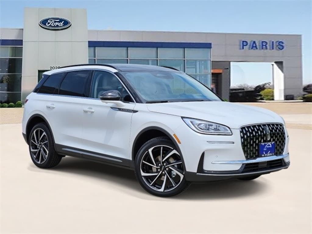 Pristine White Metallic Tri-Coat 2025 Lincoln Corsair Reserve FWD 8-Speed Automatic 2.0L I4 19" Bright Machined Aluminum Wheels, 4-Wheel Disc Brakes, 9 Speakers, ABS brakes, Air Conditioning, Alexa Built-In, Alloy wheels, AM/FM radio: SiriusXM with 360L, Apple CarPlay/Android Auto, Auto High-beam Headlights, Auto-dimming Rear-View mirror, Automatic temperature control, Brake assist, Bumpers: body-color, Compass, Delay-off headlights, Driver door bin, Driver vanity mirror, Dual front impact airbags, Dual front side impact airbags, Electronic Stability Control, Emergency communication system: 911 Assist, Four wheel independent suspension, Front anti-roll bar, Front Bucket Seats, Front Center Armrest, Front dual zone A/C, Front reading lights, Fully automatic headlights, Heated door mirrors, Heated front seats, Illuminated entry, Knee airbag, Leather steering wheel, Low tire pressure warning, Memory seat, Navigation system: Connected Navigation (4-year trial), Occupant sensing airbag, Outside temperature display, Overhead airbag, Overhead console, Panic alarm, Passenger door bin, Passenger vanity mirror, Power door mirrors, Power driver seat, Power Liftgate, Power passenger seat, Power steering, Power windows, Premium Leather-Trimmed Heated Captain's Chairs, Radio data system, Radio: Lincoln Premium Audio System w/MP3, Rear anti-roll bar, Rear Parking Sensors, Rear reading lights, Rear seat center armrest, Rear window defroster, Rear window wiper, Remote keyless entry, Security system, SiriusXM w/360L Radio, Speed control, Speed-sensing steering, Speed-Sensitive Wipers, Split folding rear seat, Spoiler, Steering wheel mounted A/C controls, Steering wheel mounted audio controls, SYNC 4 Communications & Entertainment System, Tachometer, Telescoping steering wheel, Tilt steering wheel, Traction control, Trip computer, and Variably intermittent wipers.