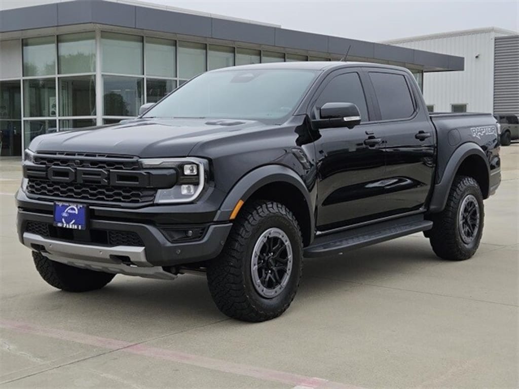 This 2024 Shadow Black Ford Ranger Raptor 4WD is well equipped and includes these features and benefits: Equipment Group 800A Standard, 4WD, 10 Speakers, 4-Wheel Disc Brakes, 4.27 Axle Ratio, ABS brakes, Air Conditioning, Alloy wheels, AM/FM radio: SiriusXM, Auto High-beam Headlights, Auto-dimming Rear-View mirror, Automatic temperature control, Body-Color SecuriCode Keyless Entry Keypad, Brake assist, Compass, Delay-off headlights, Driver door bin, Driver vanity mirror, Dual front impact airbags, Dual front side impact airbags, Electronic Stability Control, Emergency communication system: SYNC 4 911 Assist, Exterior Parking Camera Rear, Front anti-roll bar, Front Bucket Seats, Front Center Armrest, Front dual zone A/C, Front fog lights, Front License Plate Bracket, Front reading lights, Front wheel independent suspension, Fully automatic headlights, Garage door transmitter, Heated door mirrors, Heated front seats, Heated steering wheel, Illuminated entry, Leather Shift Knob, Leather steering wheel, Leather-Trimmed Front Heated Bucket Seats, Low tire pressure warning, Memory seat, Navigation system: Connected Navigation, Occupant sensing airbag, Outside temperature display, Overhead airbag, Overhead console, Panic alarm, Passenger door bin, Passenger vanity mirror, Power door mirrors, Power driver seat, Power passenger seat, Power steering, Power windows, Radio: B&O Sound System by Bang & Olufsen, Rain sensing wipers, Rear reading lights, Rear seat center armrest, Rear step bumper, Rear window defroster, Remote keyless entry, Security system, SiriusXM Satellite Radio, Speed control, Speed-sensing steering, Steering wheel mounted audio controls, SYNC 4A w/Connected Built-In Navigation, Telescoping steering wheel, Tilt steering wheel, Traction control, Trip computer, Turn signal indicator mirrors, Variably intermittent wipers, Voltmeter, Wheels: 17" Forged Beadlock Capable, and Wheels: 17" Gray-Painted Aluminum.