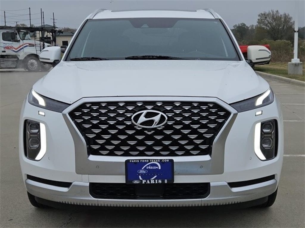 This 2021 Hyper White Hyundai Palisade Calligraphy FWD is well equipped and includes these features and benefits: Option Group 01, 12 Speakers, 3.648 Axle Ratio, 3rd row seats: split-bench, 4-Wheel Disc Brakes, ABS brakes, Air Conditioning, Alloy wheels, AM/FM radio: SiriusXM, Apple CarPlay & Android Auto, Auto High-beam Headlights, Auto-dimming Rear-View mirror, Auto-leveling suspension, Automatic temperature control, Brake assist, Bumpers: body-color, Cargo Net, Cargo Tray, Carpeted Floor Mats, Compass, Delay-off headlights, Driver door bin, Driver vanity mirror, Dual front impact airbags, Dual front side impact airbags, Electronic Stability Control, Emergency communication system: Blue Link Connected Car Service (3-year complimentary subscription), Four wheel independent suspension, Front anti-roll bar, Front Bucket Seats, Front Center Armrest, Front dual zone A/C, Front reading lights, Fully automatic headlights, Garage door transmitter: HomeLink, harman/kardon® Speakers, Heads-Up Display, Heated & Ventilated Front Bucket Seats, Heated door mirrors, Heated front seats, Heated rear seats, Heated steering wheel, Illuminated entry, Knee airbag, Low tire pressure warning, Memory seat, Navigation System, Occupant sensing airbag, Outside temperature display, Overhead airbag, Overhead console, Panic alarm, Passenger door bin, Passenger vanity mirror, Power door mirrors, Power driver seat, Power Liftgate, Power moonroof, Power passenger seat, Power steering, Power windows, Premium Nappa Leather Seat Trim, Radio data system, Radio: AM/FM/MP3 Premium Audio System, Rain sensing wipers, Rear air conditioning, Rear anti-roll bar, Rear reading lights, Rear window defroster, Rear window wiper, Reclining 3rd row seat, Remote keyless entry, Security system, Speed control, Speed-sensing steering, Split folding rear seat, Spoiler, Steering wheel mounted audio controls, Tachometer, Telescoping steering wheel, Tilt steering wheel, Traction control, Trip computer, Turn signal indicator mirrors, Variably intermittent wipers, Ventilated front seats, Ventilated rear seats, and Wheels: 20" x 7.5J Calligraphy Exclusive Alloy.