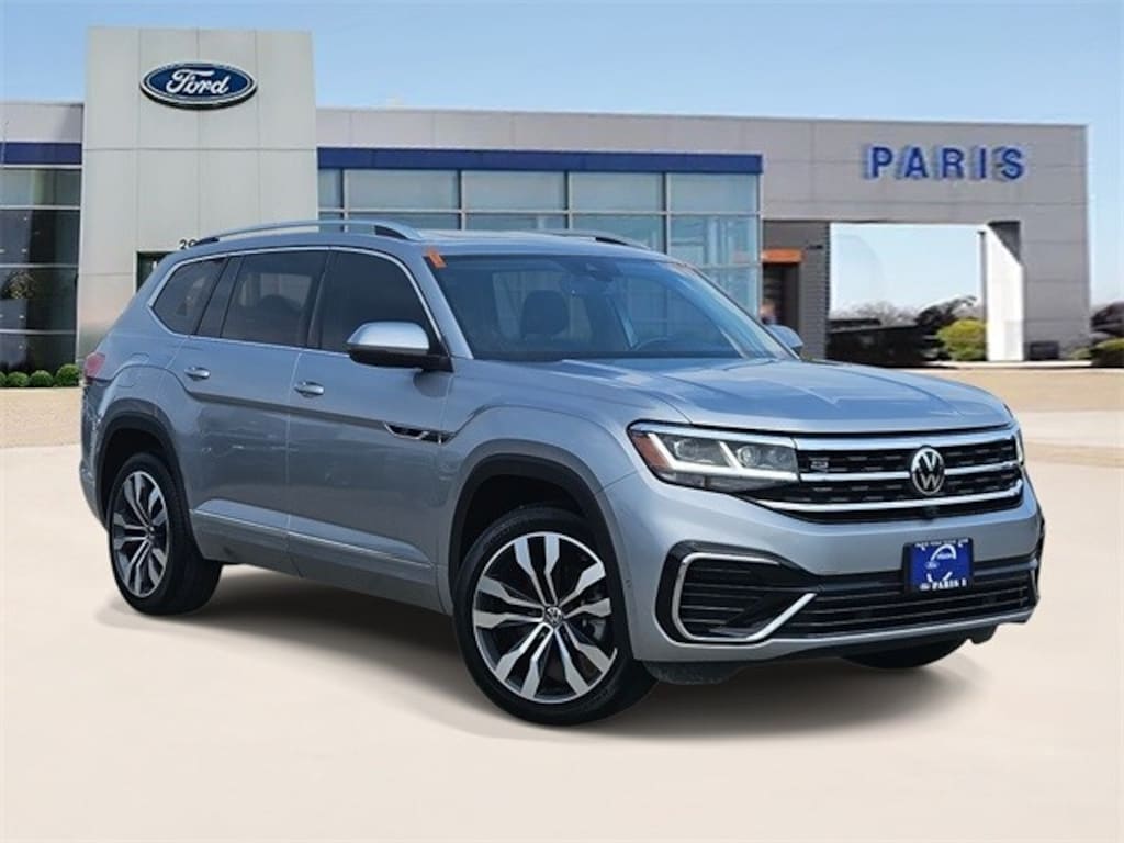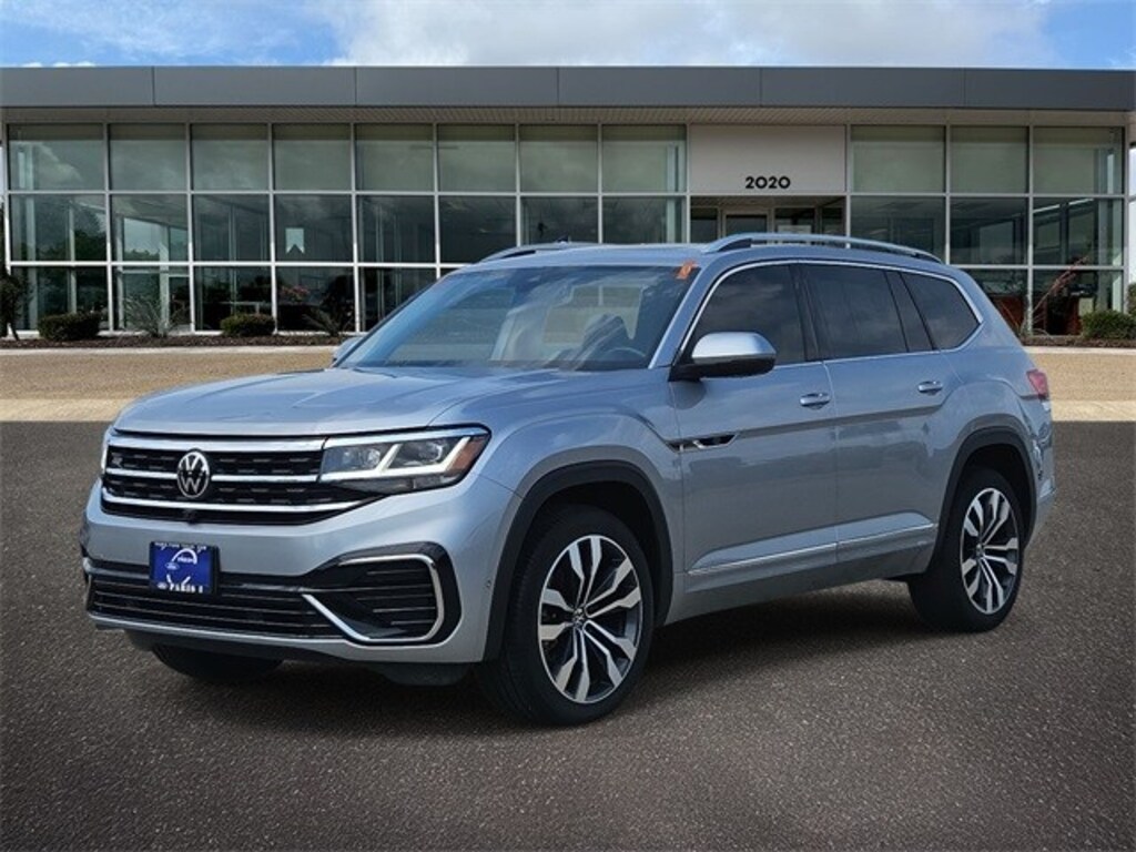 This 2023 Silver Metallic Volkswagen Atlas 3.6L V6 SEL Premium R-Line AWD is well equipped and includes these features and benefits: 12 Speakers, 3.60 Axle Ratio, 3rd row seats: split-bench, 4-Wheel Disc Brakes, ABS brakes, Air Conditioning, Alloy wheels, AM/FM radio: SiriusXM with 360L, Auto High-beam Headlights, Auto-dimming Rear-View mirror, Automatic temperature control, Brake assist, Bumpers: body-color, Compass, Delay-off headlights, Driver door bin, Driver vanity mirror, Dual front impact airbags, Dual front side impact airbags, Electronic Stability Control, Emergency communication system: VW Car-Net Safe & Secure 5-year, Four wheel independent suspension, Front anti-roll bar, Front Bucket Seats, Front Center Armrest, Front dual zone A/C, Front fog lights, Front reading lights, Fully automatic headlights, Heated door mirrors, Heated front seats, Heated rear seats, Heated steering wheel, Htd/Actively Ventilated Comfort Front Sport Seats, Illuminated entry, Leather Shift Knob, Low tire pressure warning, Memory seat, Navigation System, Occupant sensing airbag, Outside temperature display, Overhead airbag, Overhead console, Panic alarm, Passenger door bin, Passenger vanity mirror, Perforated Vienna Leather Seating Surfaces, Power door mirrors, Power driver seat, Power Liftgate, Power moonroof: Panoramic, Power passenger seat, Power steering, Power windows, Radio data system, Radio: MIB3 Discover Media w/8" Touchscreen Nav, Rain sensing wipers, Rear air conditioning, Rear anti-roll bar, Rear audio controls, Rear reading lights, Rear seat center armrest, Rear window defroster, Rear window wiper, Remote keyless entry, Security system, Speed control, Speed-sensing steering, Split folding rear seat, Spoiler, Sport steering wheel, Standard Suspension, Steering wheel mounted audio controls, Tachometer, Telescoping steering wheel, Tilt steering wheel, Traction control, Trip computer, Turn signal indicator mirrors, Variably intermittent wipers, Ventilated front seats, and Wheels: 21" 2-Tone Machined Alloy.